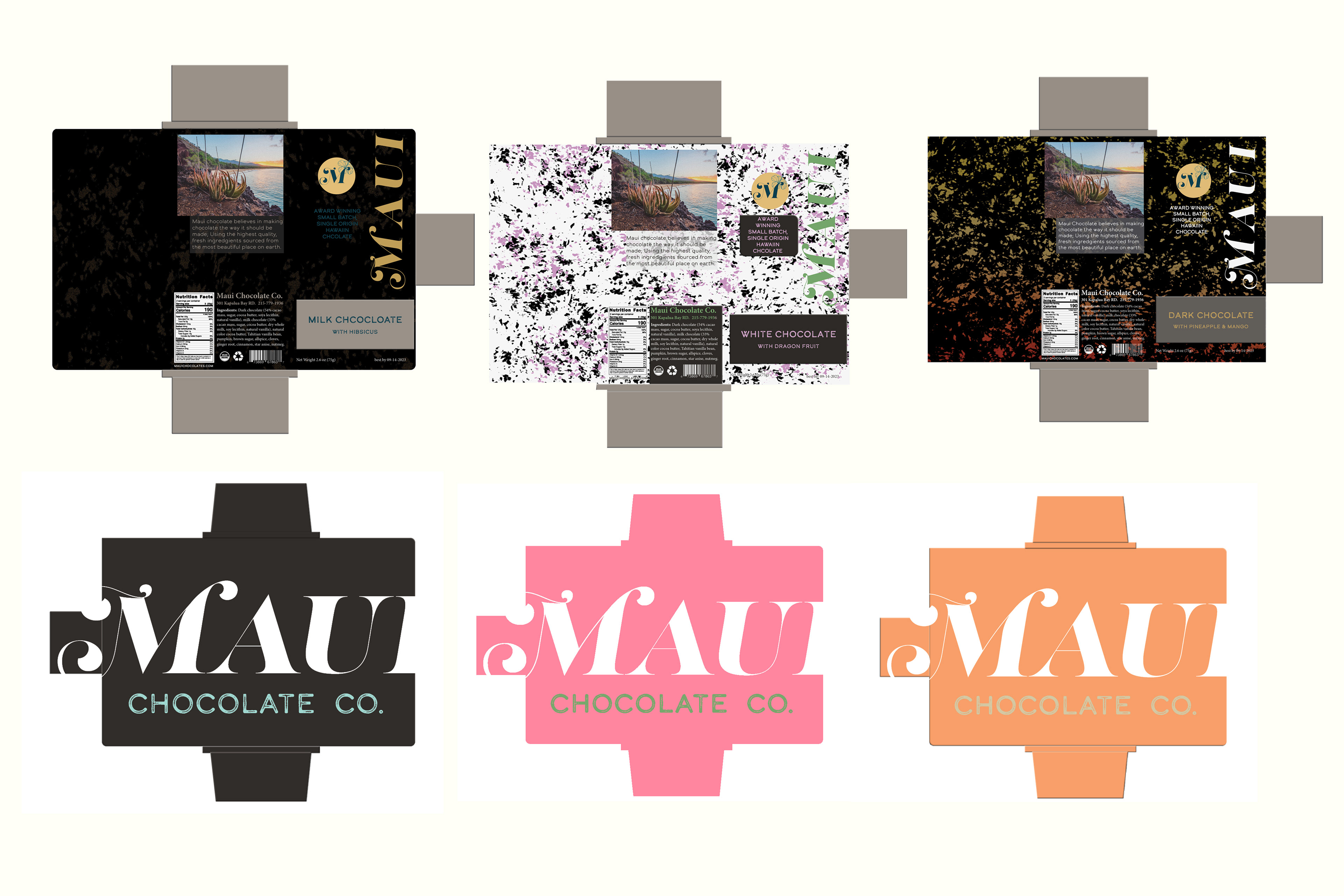 Student project with the objective of making a fictions chocolate business & making the packaging design and branding for the business